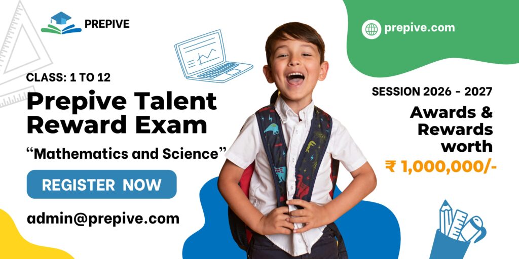 Prepive Talent Reward Exam for Class 1 to 12 is a scholarship or competitive exam conducted to identify and reward talented students across various subjects such as Maths, Science, Reasoning, and General Knowledge. These exams aim to: